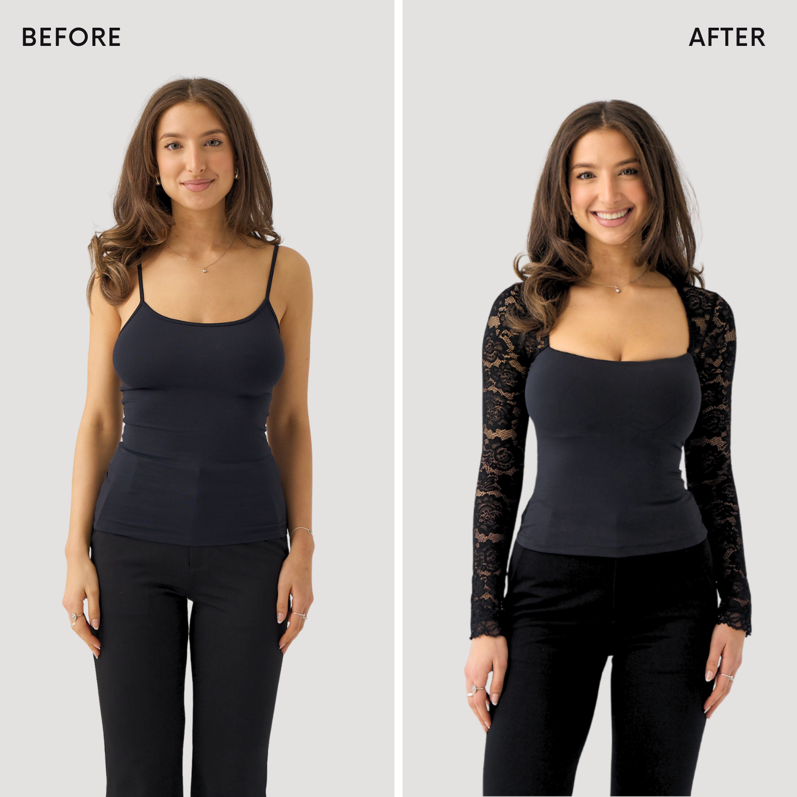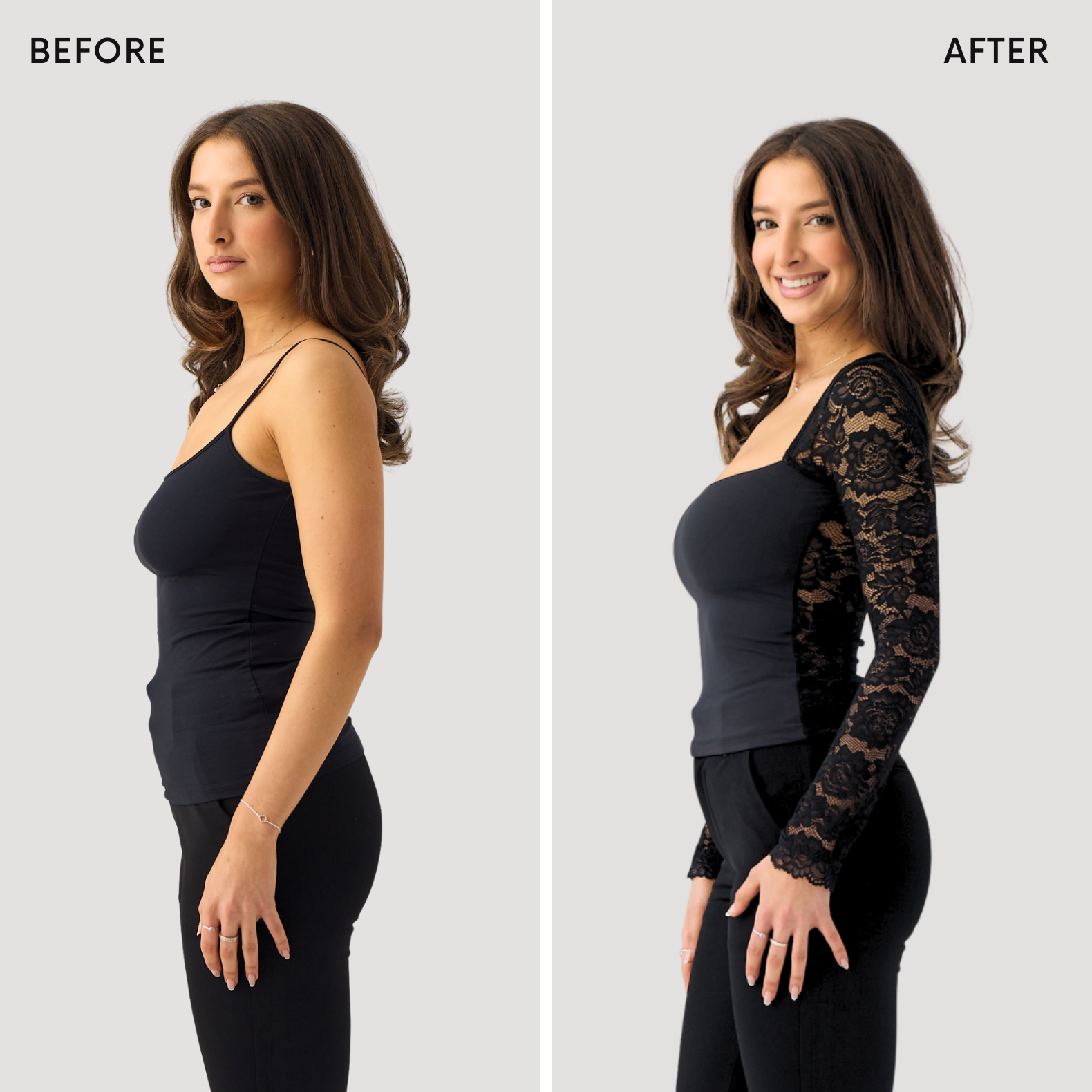 Imagine a beautiful lace top without any bra straps or marks on the back!! This style has a full lace back with high support in the front. Made in the most beautiful stretchy lace material which makes it super comfortable to wear.